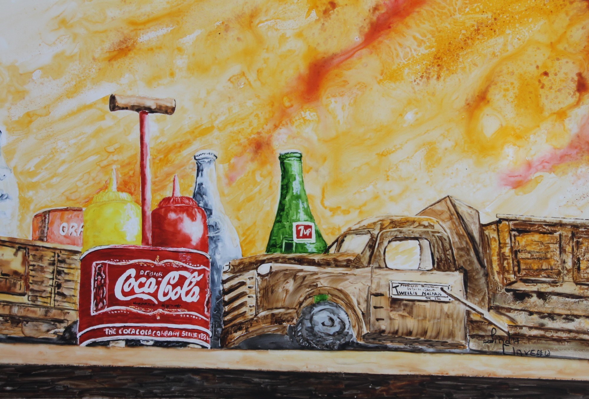 Qui ne se souvient pas de Coca-Cola .Une liqueur très désaltérante et un support, très à l’ancienne de sauce à condiments, tel la moutarde et le ketchup.